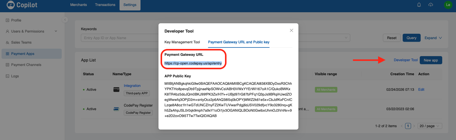 CodePay Key ToolYou can also manually generate RSA2 keys using openssl, as shown below: